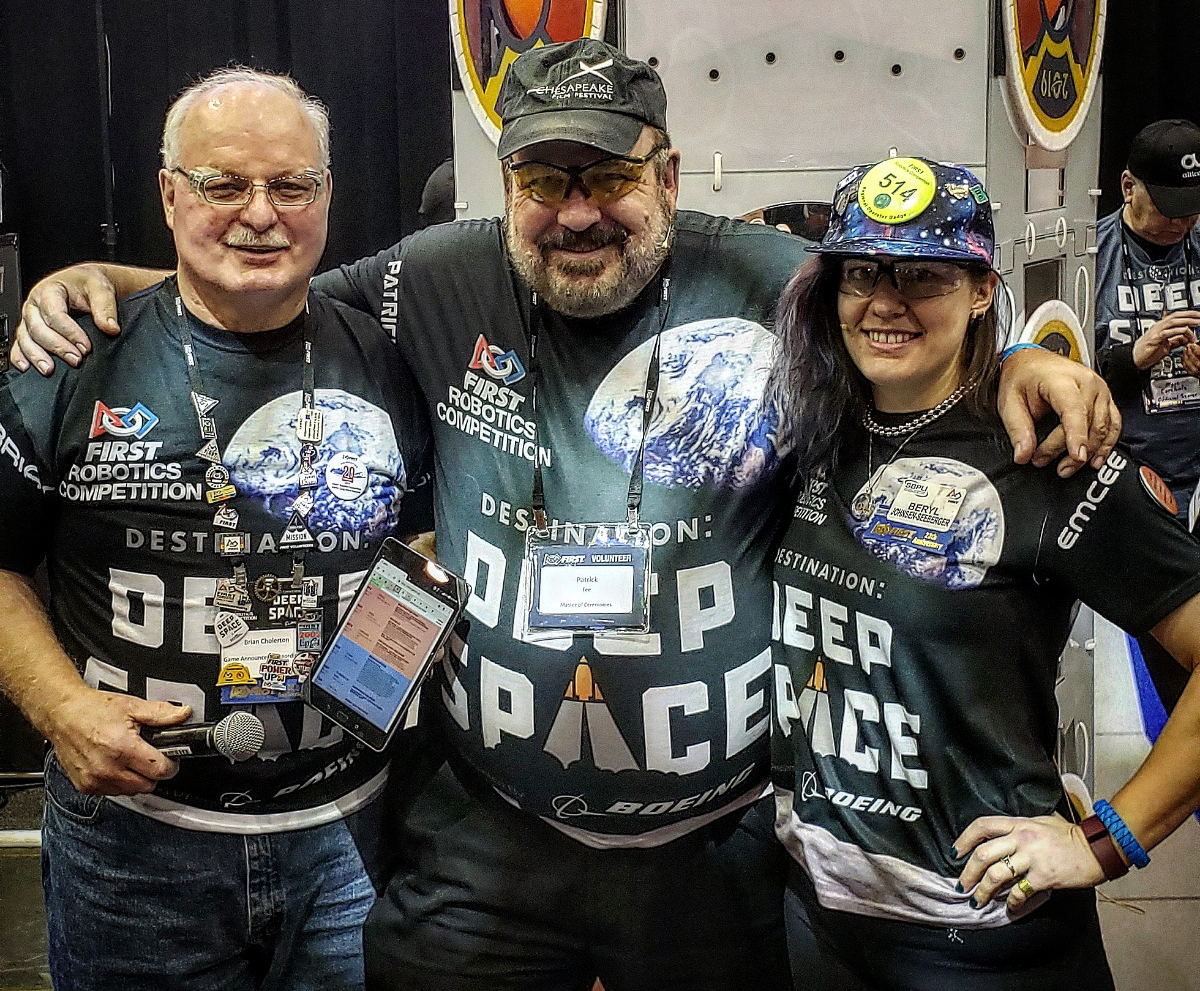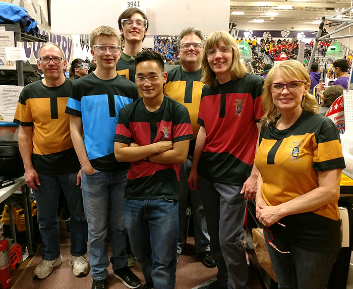 One of our new mentors, Michelle, wanted to a Star Trek Theme for this year challenge, "Into Orbit." We looked up 'Official' shirts and they were very expensive. So, we used Jakprints 'print all over' shirts to create them and they look great! (https://www.jakprints.com/apparel/all-over-shirt-printing.html) Each sub-team had a special color shirt and nobody was an expendable crewman!